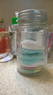 Once they've been cleaned, my cotton rounds get stored in a glass jar in my bathroom until the next use.
